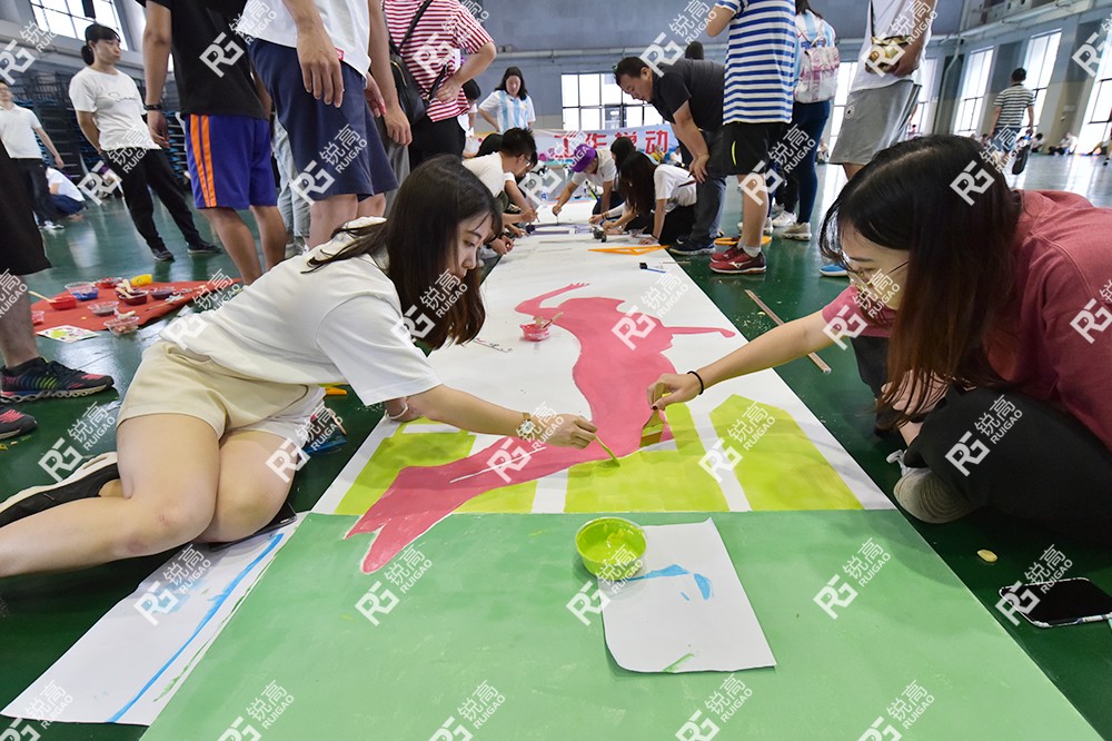 经过3小时的共同努力完成了极具企业文化意义与视觉效果的巨画。
