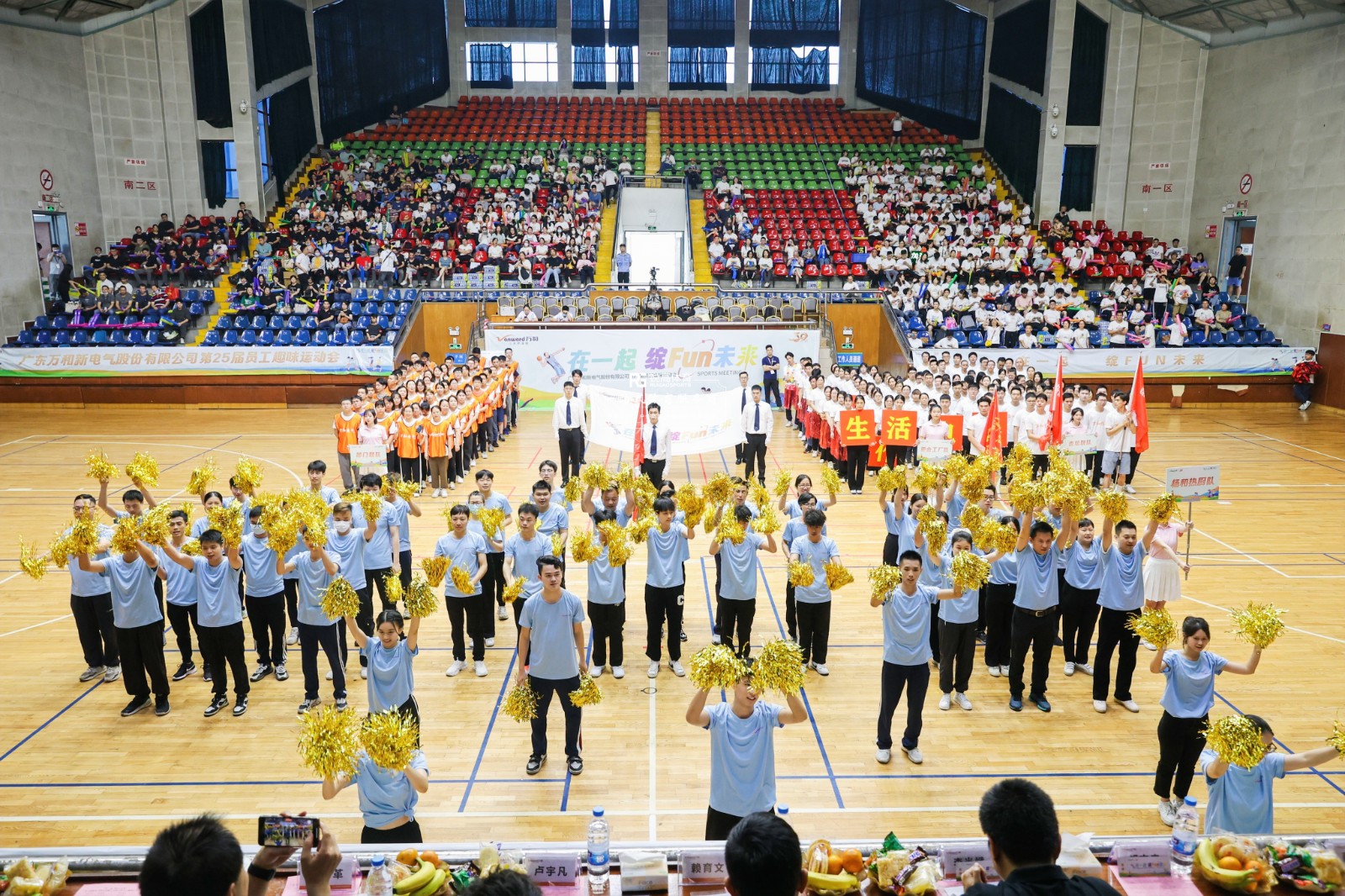 企业员工怀着期待与兴奋的心情完成入场签到后,场馆内的气氛逐渐变得更为热烈。动感音乐响起,运动会开幕式开始了,各个队伍依次入场表演,展示出各自的风采,也表现出了每个员工良好的精神面貌。